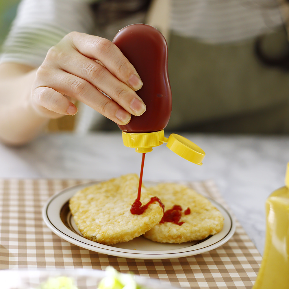 거꾸로 새지않는 플라스틱 캠핑 케찹 시럽 꿀 오일 실리콘 마개 미니 소스통 1p
