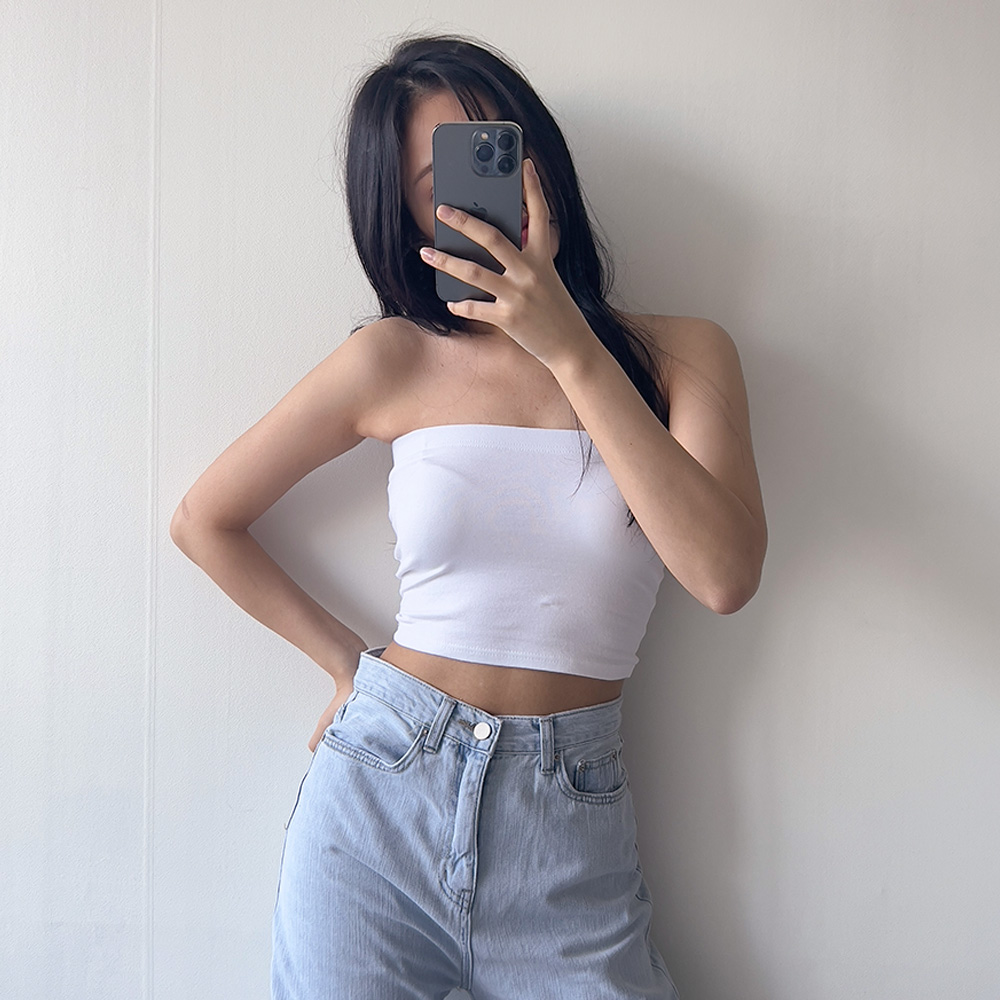 여성탱크탑 캡내장 오프숄더 크롭 밴딩튜브탑(3color)