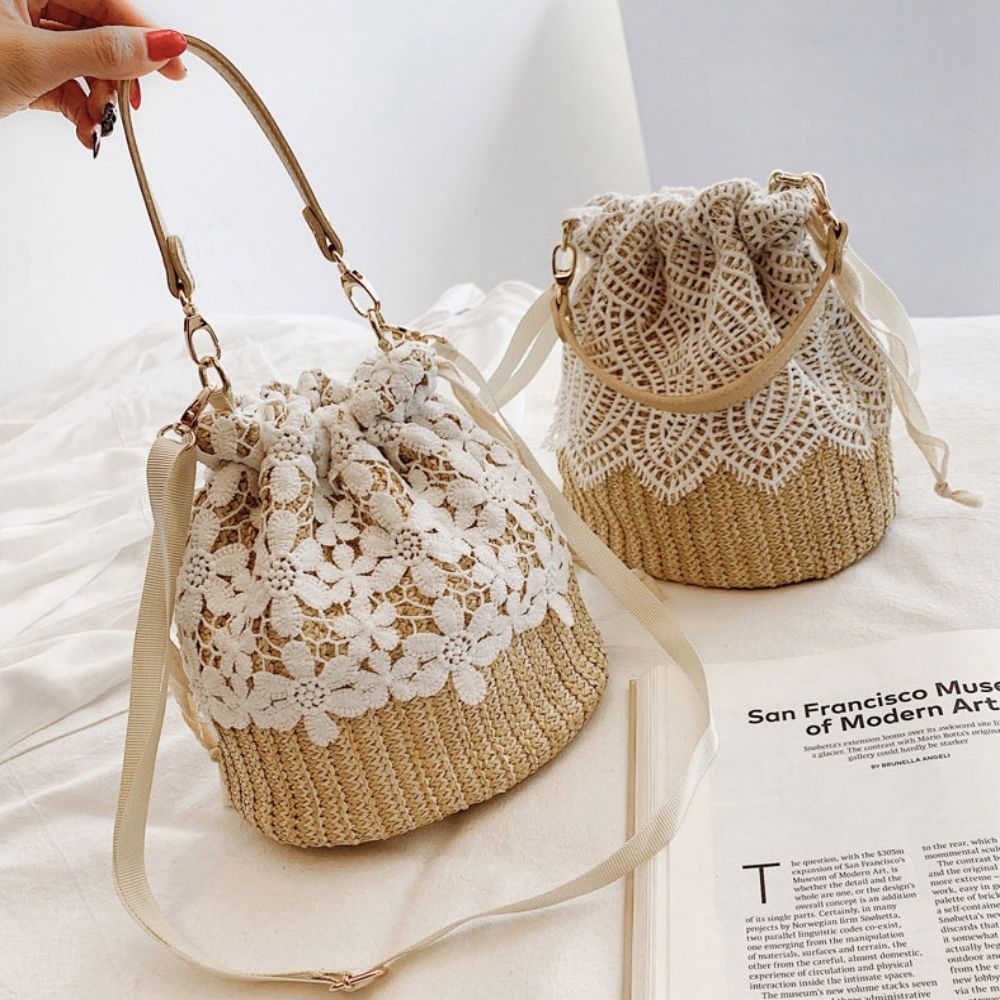 여성 여름 예쁜 레이스 밀짚 복조리백 멀티 버킷백 여자가방 왕골가방 여름가방 크로스백 밀짚가방
