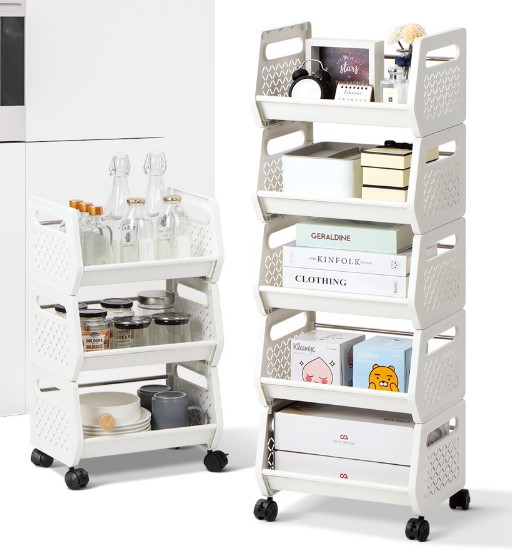 [3단 5단 멀티 수납 트롤리🛒] 이동식 다용도 선반 진열대 보관 보관함 주방 키친 부엌 스탠드 바퀴 수납 수납함 세탁실 장난감정리