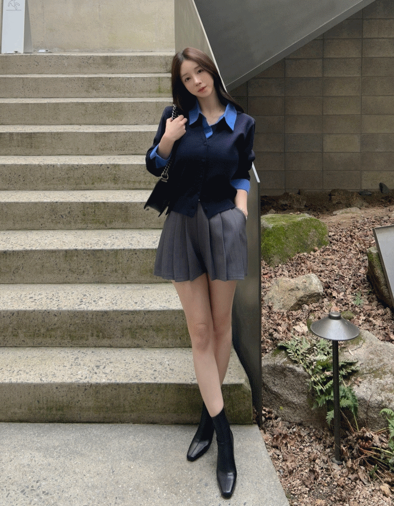 주름반바지 뒷밴딩반바지 배색숏팬츠
