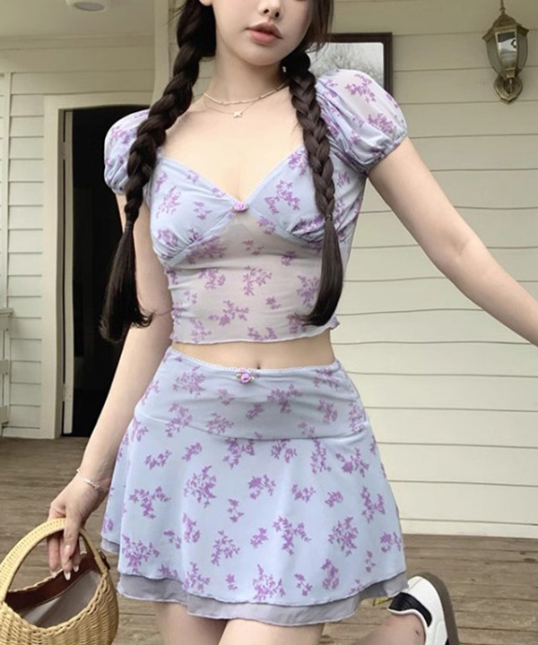무료배송 [코디세트 탑+스커트] 휠릴리 라벤더 쉬폰투피스룩 (퍼플)