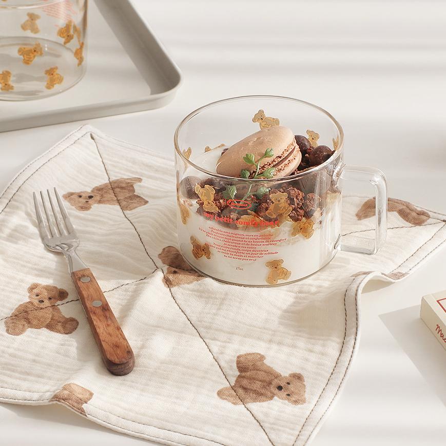 곰돌이 요거트 시리얼 머그 500ml 다이어트 홈카페 사무실 점심 머그 내열 유리