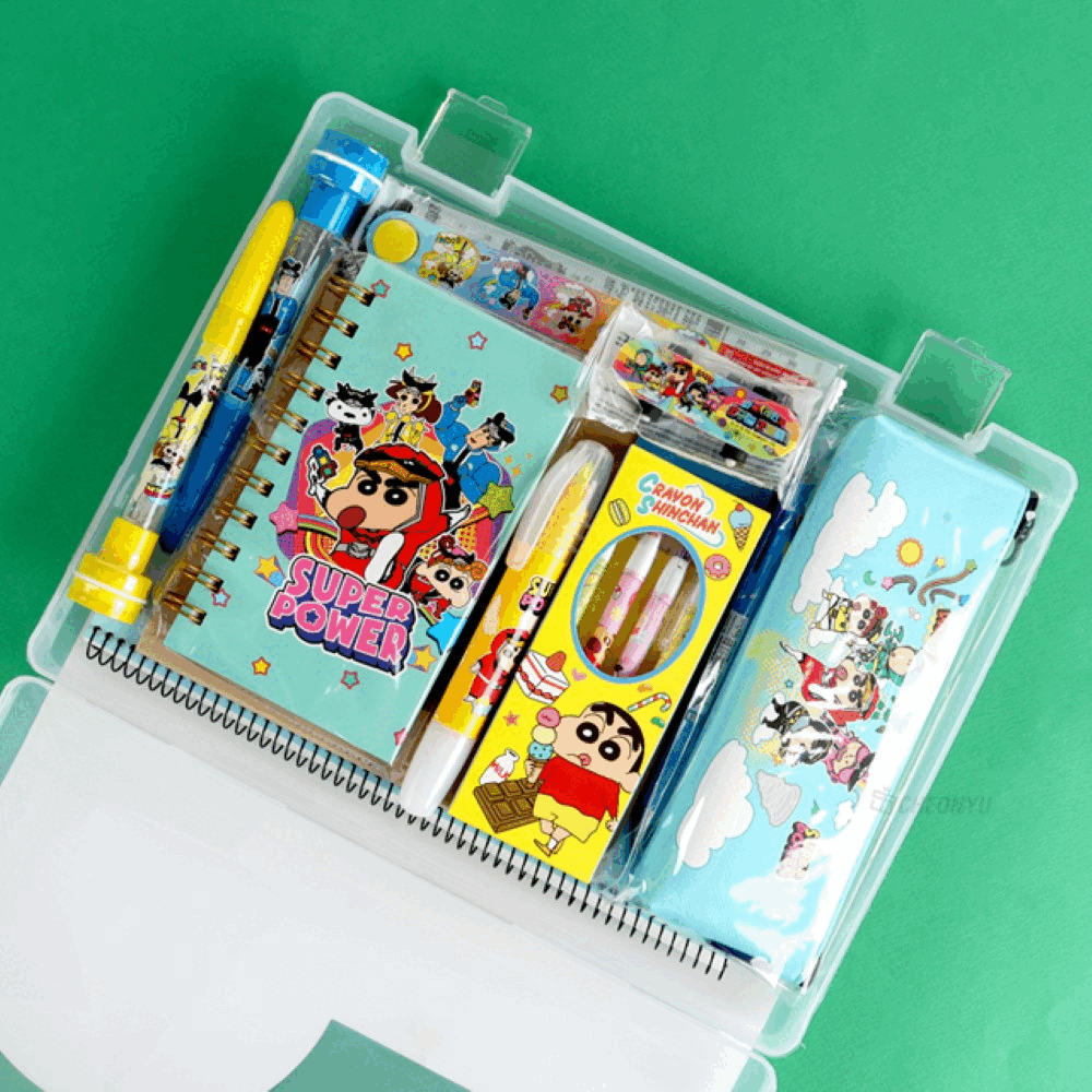 짱구 종합 문구세트 학용품 세트 어린이날 선물 화일 스프링 노트 수첩 필통 3색 볼펜 비눗방울 스탬프 도장 카트리지 샤프 지우개 자 형광펜