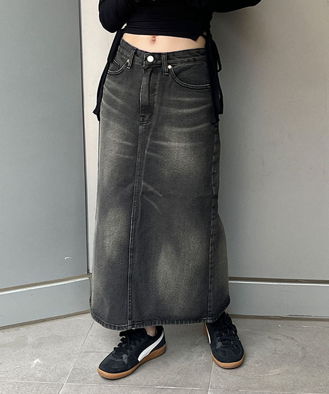 3SIZE [2COLOR] 워싱 뒷트임 데님 롱 스커트