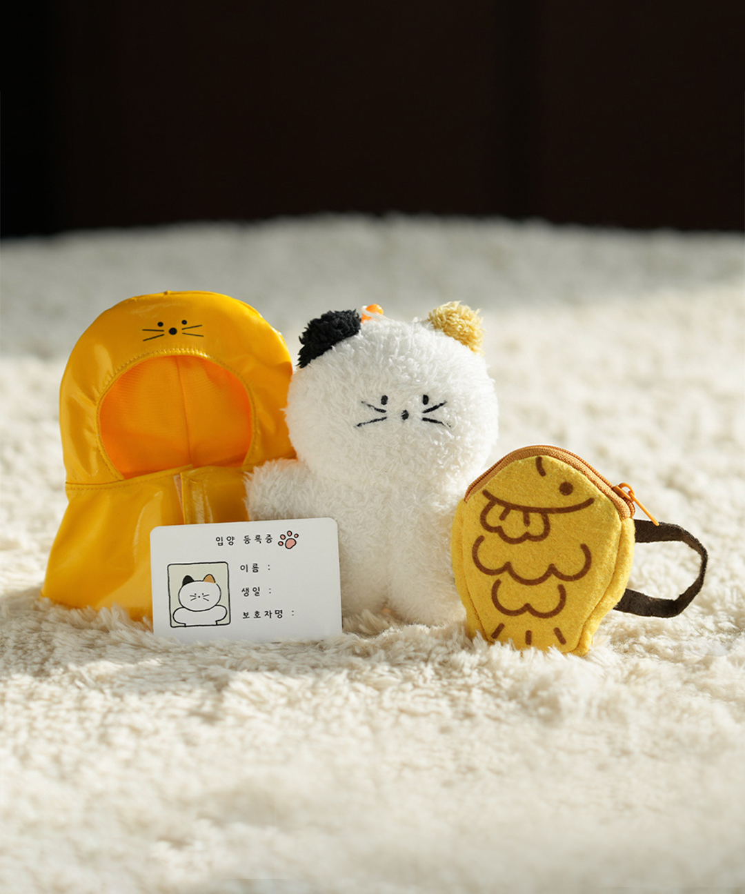 인형 삼색이 보조배터리 (+입양증+우비+붕어빵가방) 고양이 충전식 USB 귀여운 선물