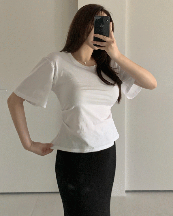 [무료배송]라인핏 팔넉넉 허리쏙 핀턱 반팔 티셔츠 3color