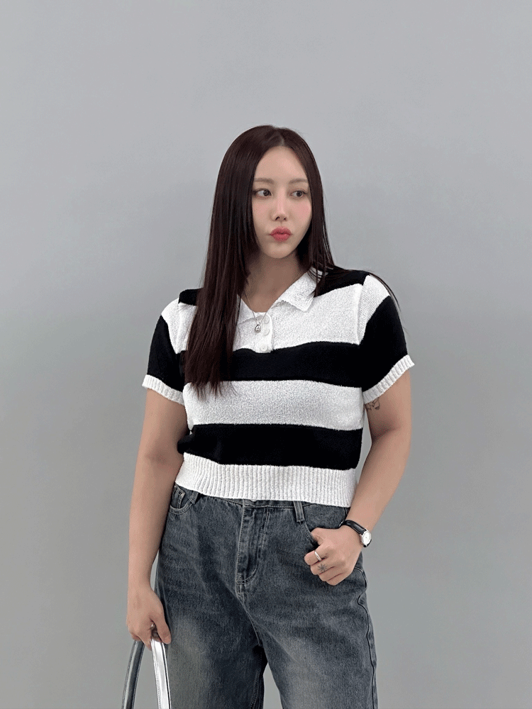 1156 코니 스트라이프 카라 반팔 니트[3color/44-77]