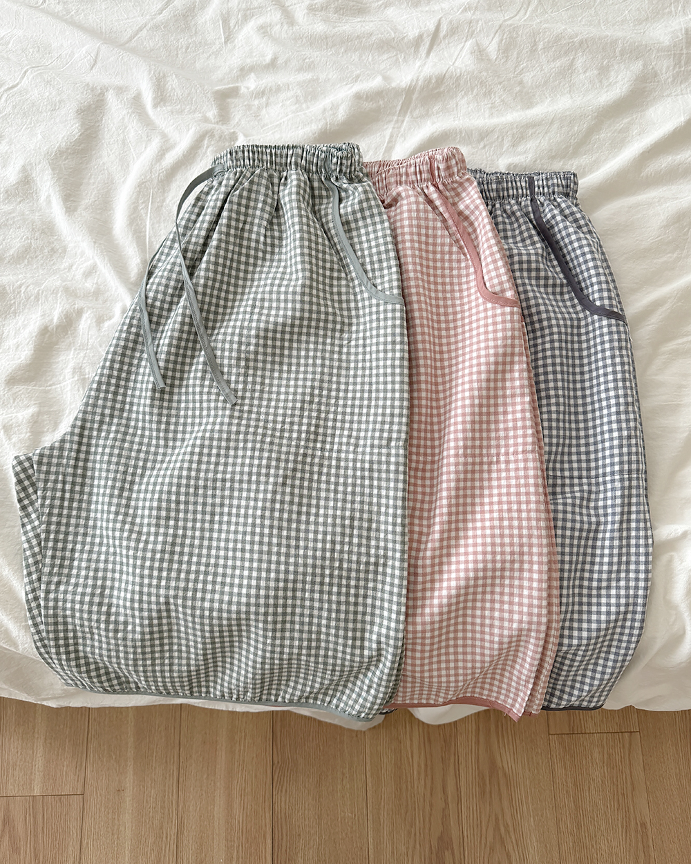 국산 빅사이즈 주머니 잠옷 바지 파스텔 체크 커플바지 파자마 부모님 선물