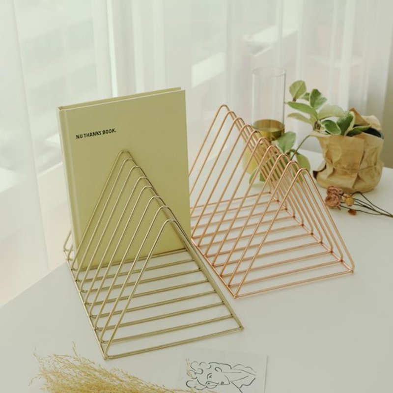 철제 스틸 골드 로즈골드 책상 삼각 책꽂이 - 책상책꽂이 책상위 사무실 미니 선반 정리대 철제책상책꽂이 인테리어 미니책꽂이 북트레이