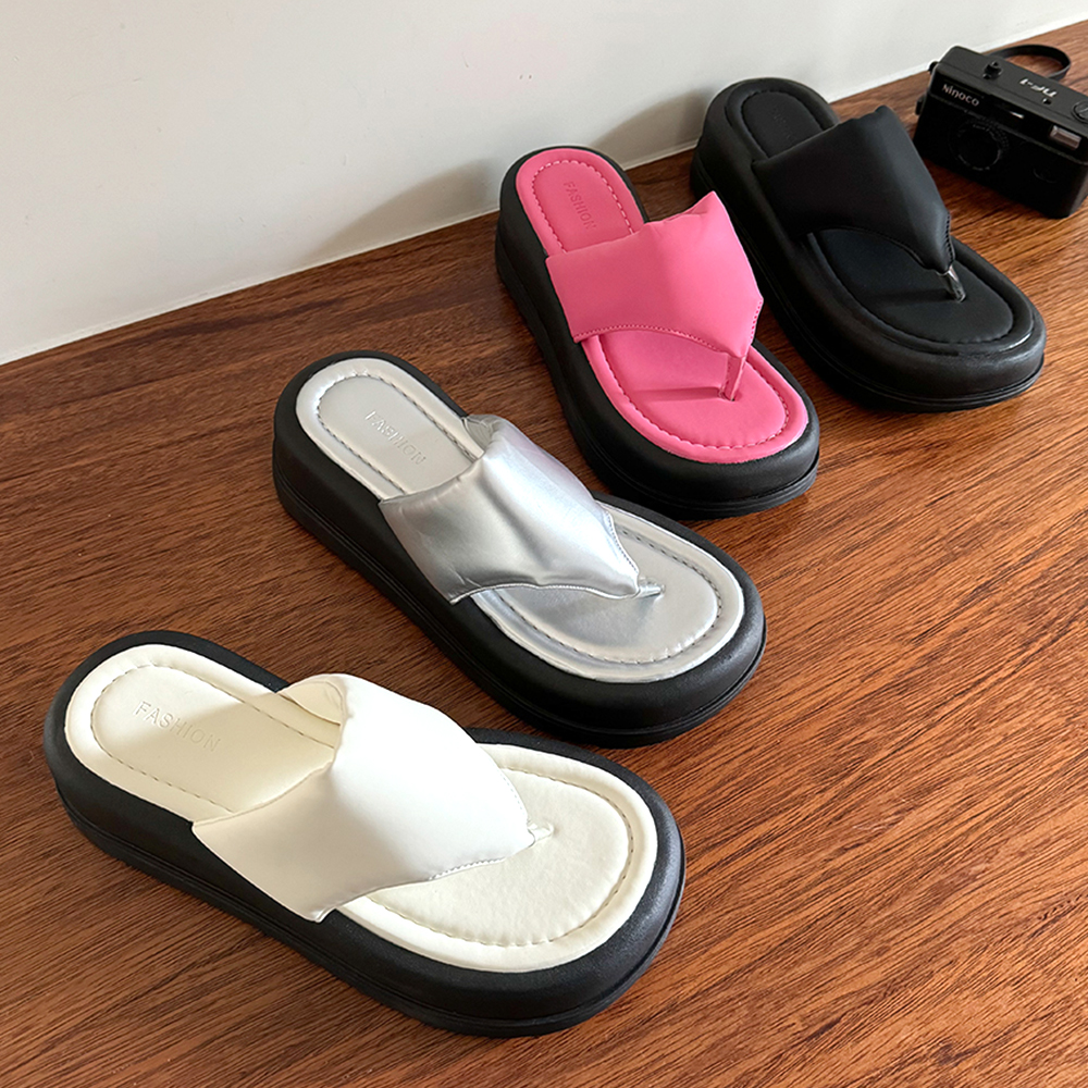 [✨초특가할인] 배색 통굽 키높이 플리플랍 쪼리