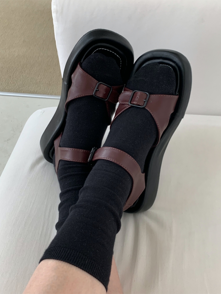 게리 올드머니 버클 벨트 플랫폼 스트랩 샌들 3.5cm
