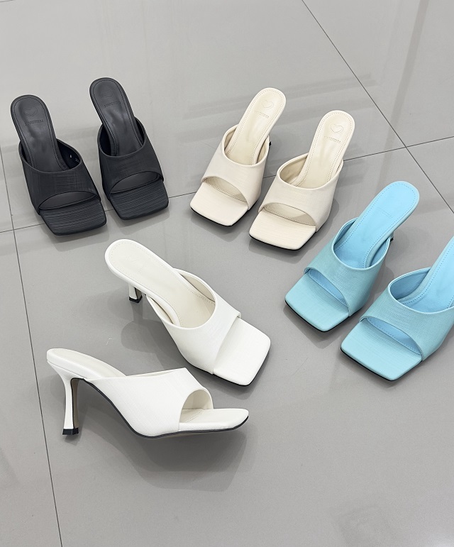 새틴 패브릭 패턴 스퀘어 뮬 슬리퍼힐 샌들 9cm