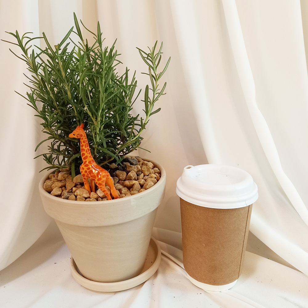 "집들이,개업,승진"소형화분 로즈마리 기린피규어 증정 탁상용화분 리본화환