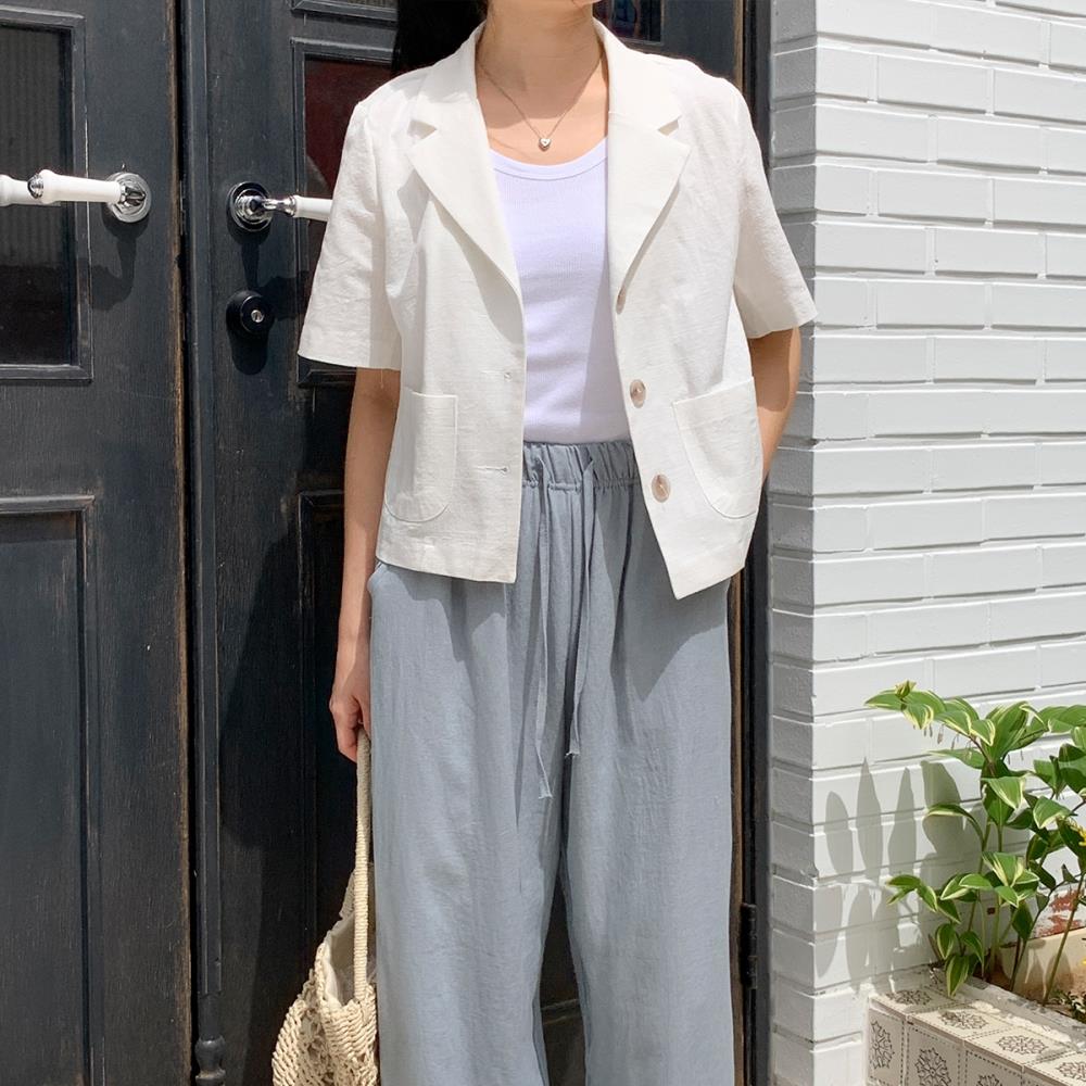 여자 여름 포멀룩 직장인 베이직 포켓 반팔 카라 자켓
