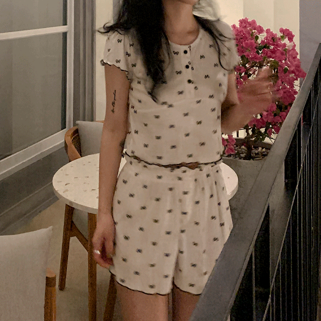 리본 패턴 날라리 반팔 여름 파자마 세트