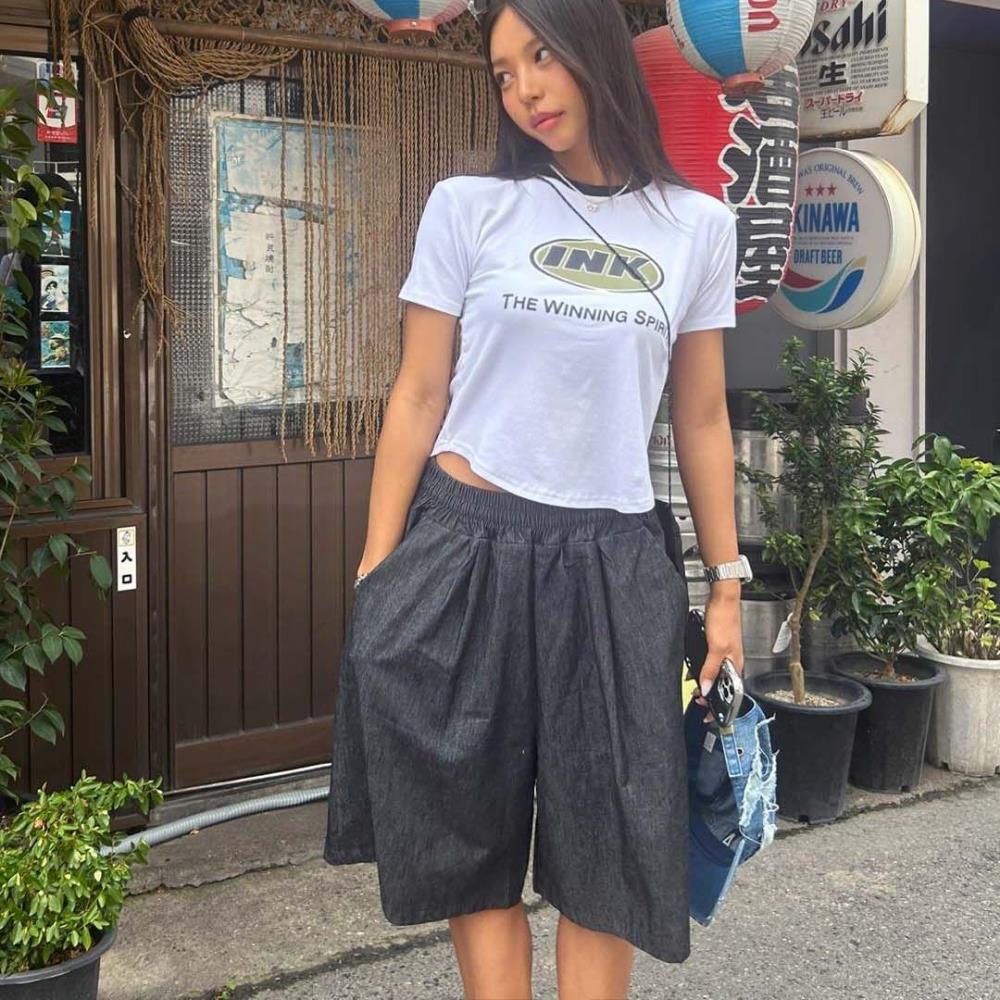 여자 데님버뮤다팬츠 핀턱 와이드핏 썸머 5부 청반바지