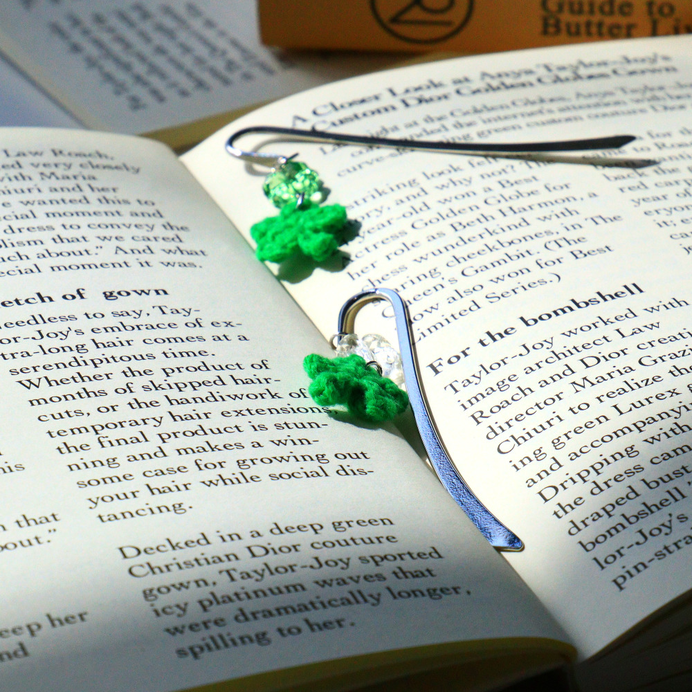 럭키마커 책갈피 뜨개 북커버 네잎클로버 북마크 금속 독서 북클립 책홀더 북