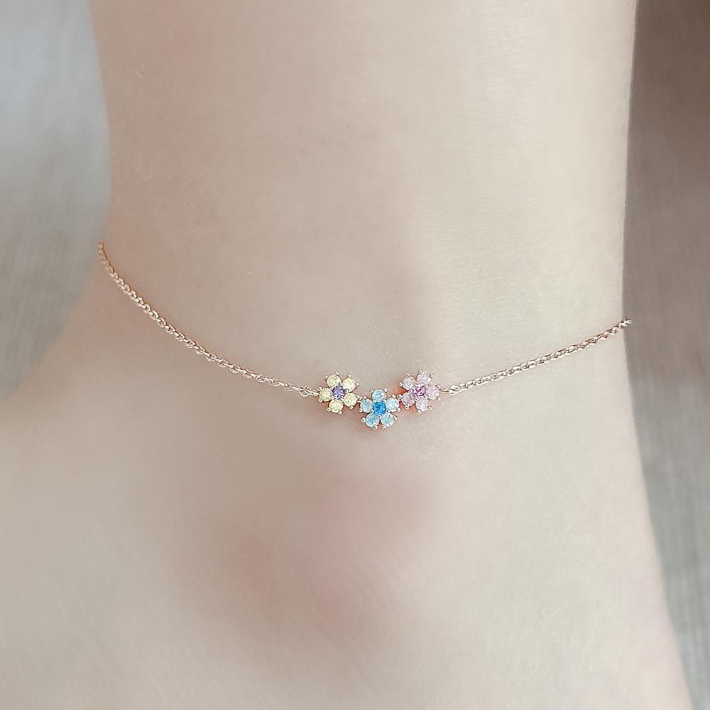 (발찌) 꽃 세송이 고급 럭셔리 컬러 유색 큐빅
