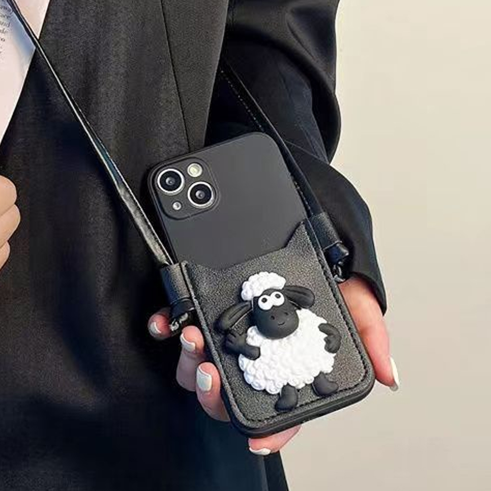 갤럭시 A55 A35 A25 5G A15 4G 부드러운 양 털 인형 가죽 카드 포켓 롱 스트랩 핸드폰 케이스