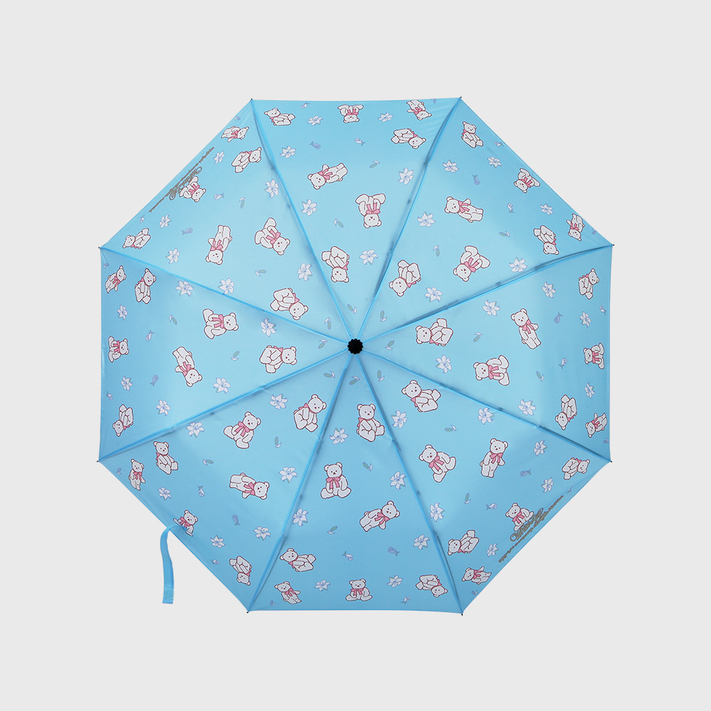[+파우치] 릴리 코비 패턴 블루 3단 반자동 우산