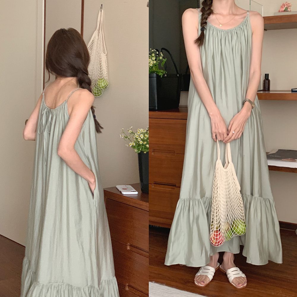 F007275_어깨끈 뷔스티에 셔링 나시 롱원피스