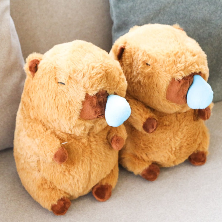 훌쩍 콧물 귀여운 카피바라 중형 인형 [30cm 캐릭터 동물 털 봉제 웃긴 낮잠 애착 소품 장식 굿즈]