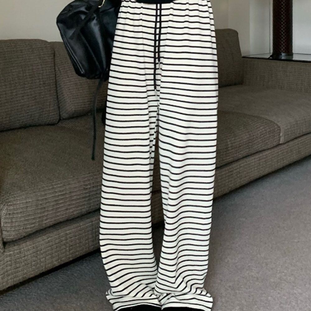 패션 여성 여행 외출 코디 스트라이프 밴딩 팬츠 바지