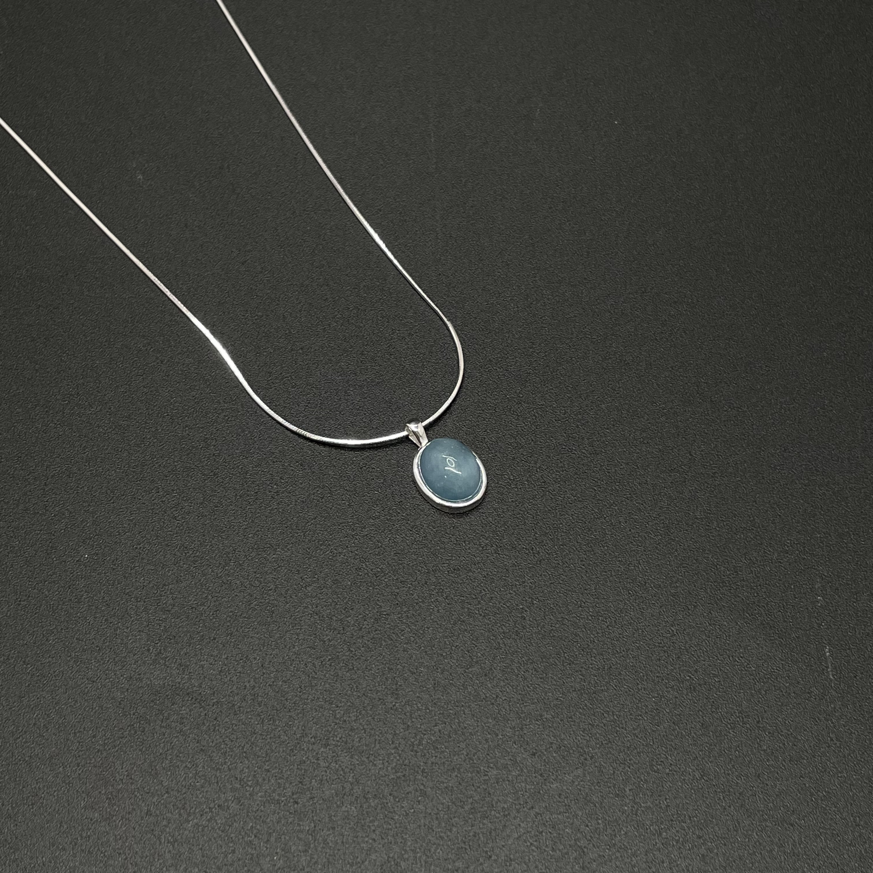 실버925 아쿠아 천연석 뱀줄 남자 여자 은 목걸이