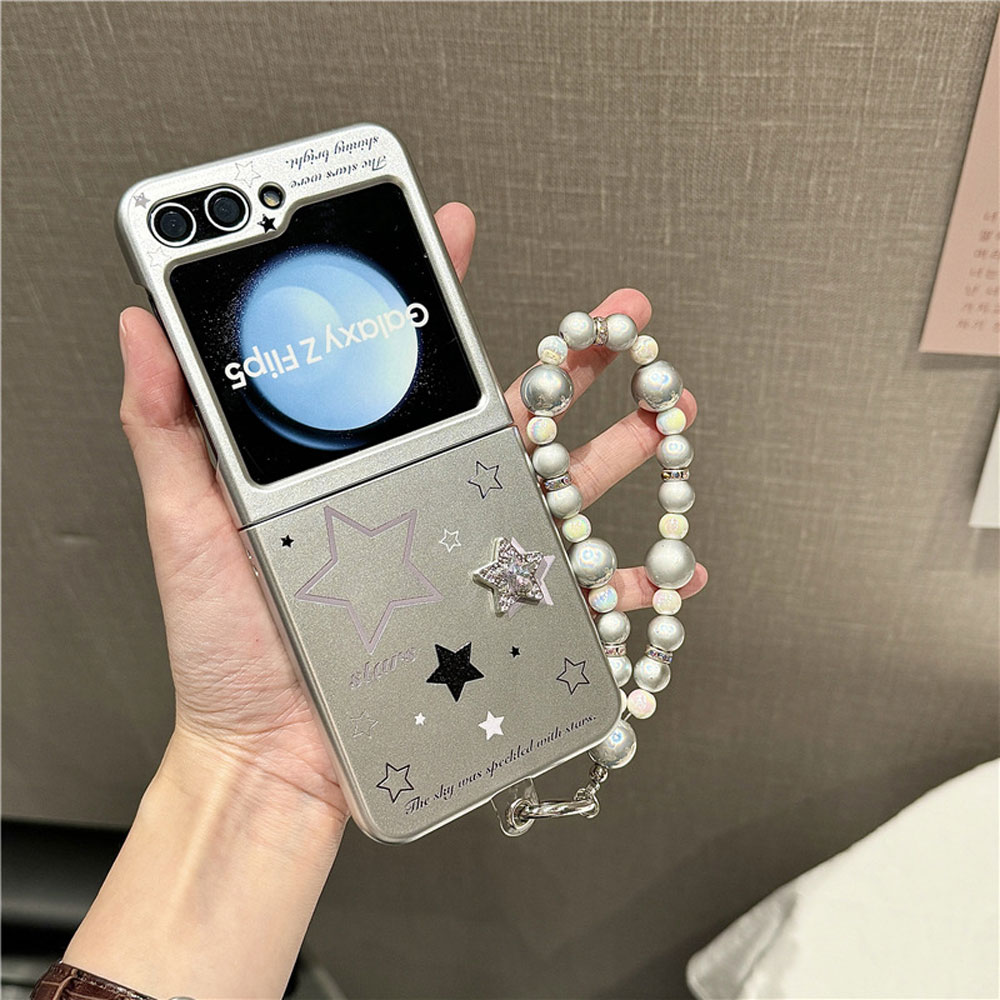 갤럭시 Z플립6 케이스 제트 ZFLIP 5 4 3 메탈릭 실버 별 스트랩