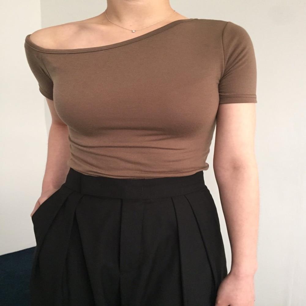 엔글로 플레인 딱붙는 여성 오프숄더 스트레치 티셔츠 숏슬리브