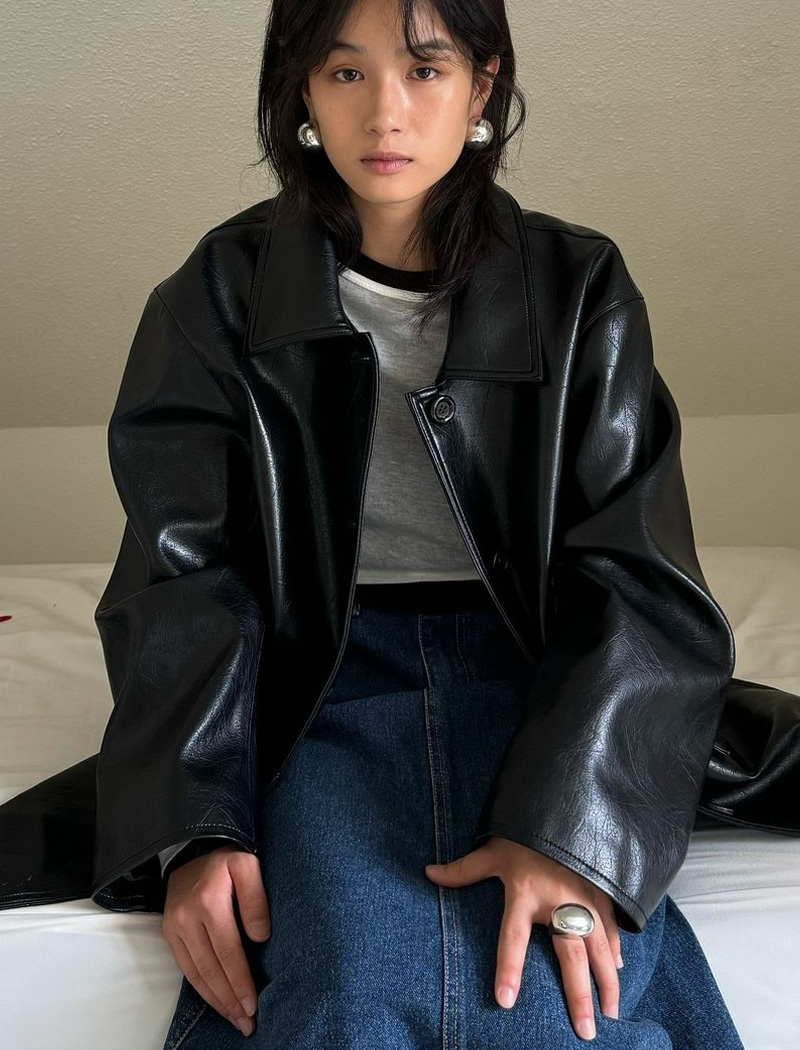클래식 여성 가을 가죽자켓 재킷 루즈핏 빈티지 싱글 레더 자켓 (블랙)