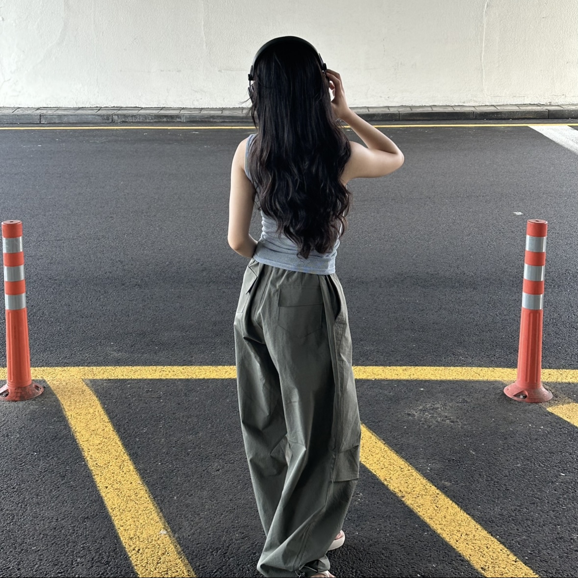 모델소장🖤 [흔하지X/사계절/투웨이] 나띠 니(knee) 핀턱 포켓 롱 와이드 나일론 스트링 리본 조거 투웨이 팬츠