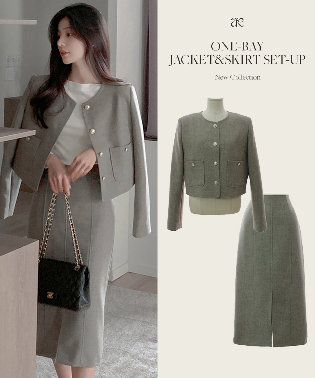 [연말특가✨][하객룩세트] 원베이 라운드 자켓+원베이 롱 스커트 bd