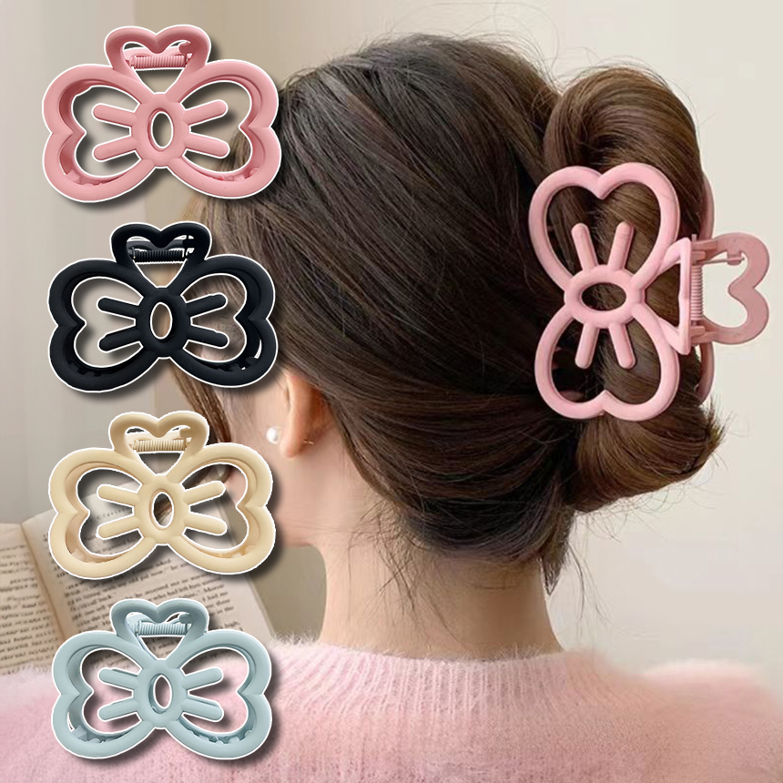 여성 파스텔 헬로우 고양이 리본 올림머리 반머리 무광 반묶음 패션 헤어 집게핀 헬로우리본키리집게핀