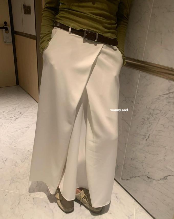 [딩일] 온 리턴 랩스커트 뒷밴딩 롱 스커 빅사이즈 밴딩 하우스랩 가을버전 임산부추천 2color
