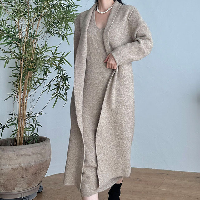 울 도톰 폭닥 루즈핏 숄롱가디건 롱원피스 세트