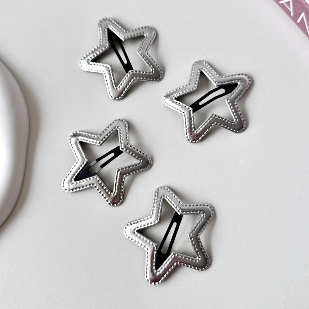 실버 똑딱핀 메탈 포인트 옆머리 별 헤어핀
