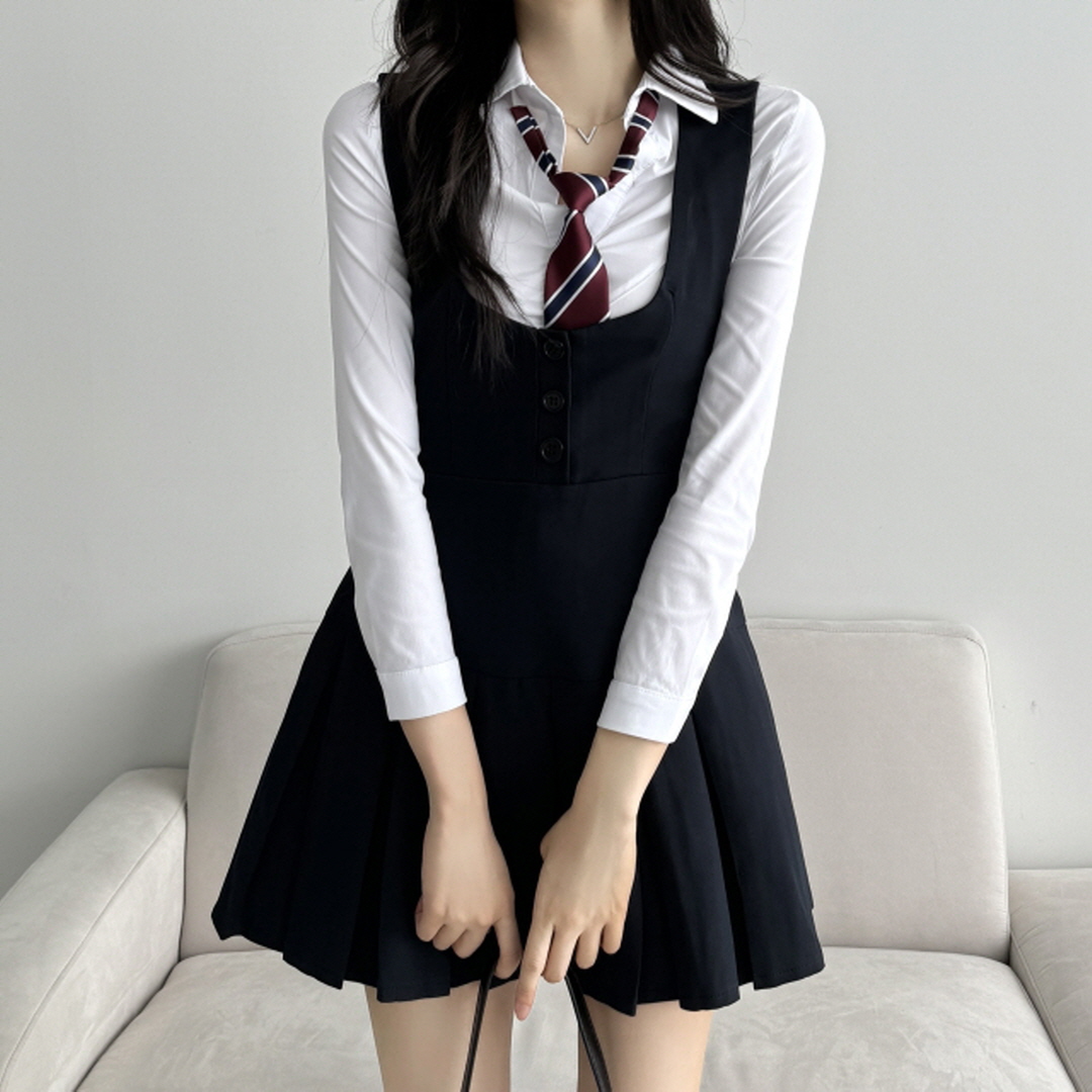 [저렴이X]하이틴 슬림핏 뷔스티에 교복 나시 조끼 플리츠 놀이공원 원피스