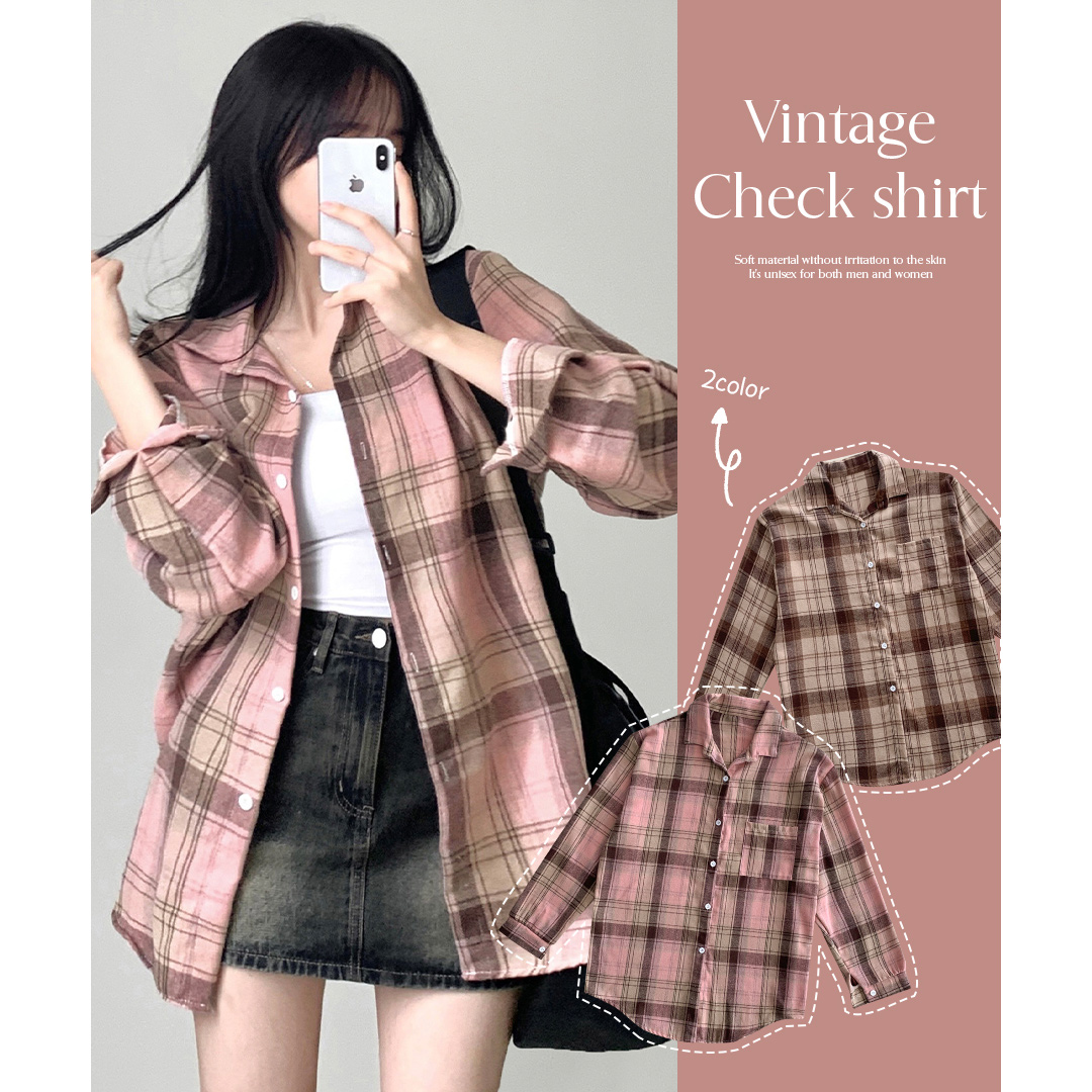 [보들소재💓/왕박시핏!] 솔라 오버핏 빈티지 체크 긴팔 셔츠 남방 남녀공용 커플아우터 간절기템