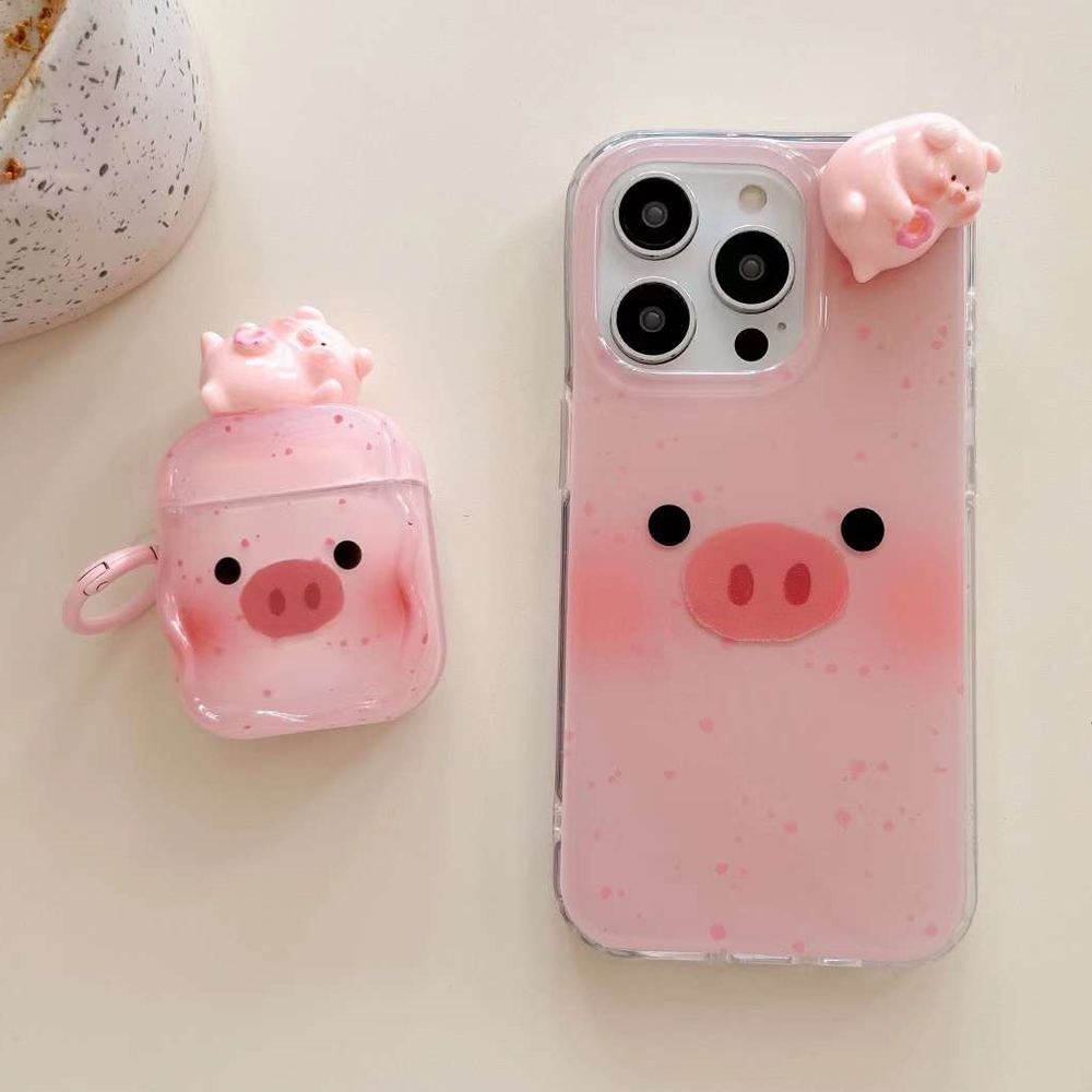 에어팟 아이폰 16 15 14 13 12 프로 맥스airpods pro max 귀여운 돼지 얼굴 캐릭터 파츠 슬림 실리콘 케이스