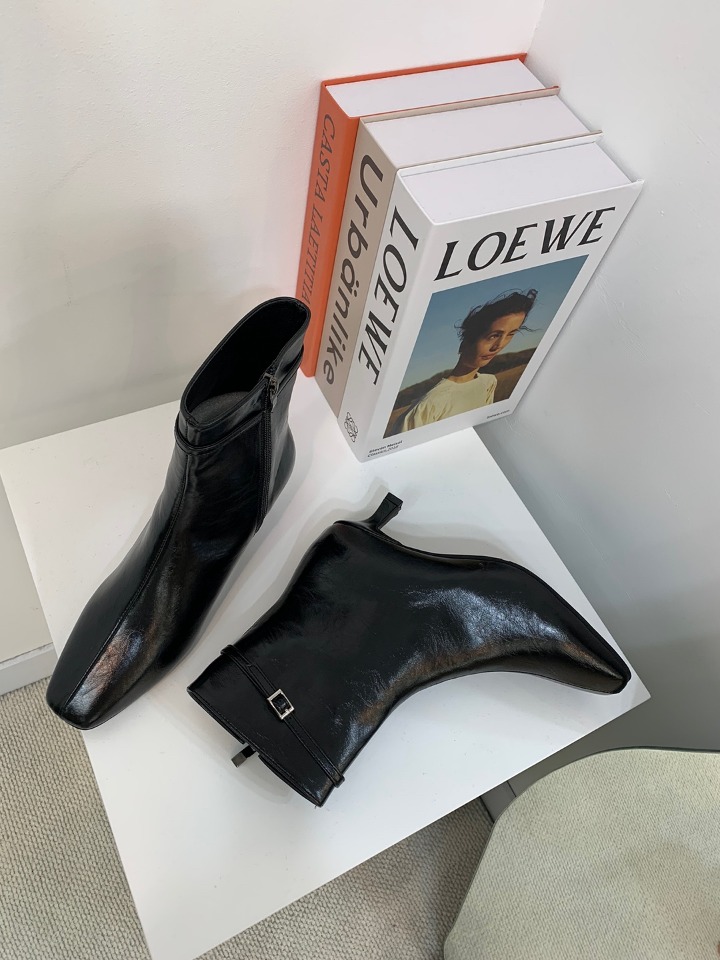 (신상,무료배송)두라 5cm 미들 스퀘어 레더 앵클부츠 2color
