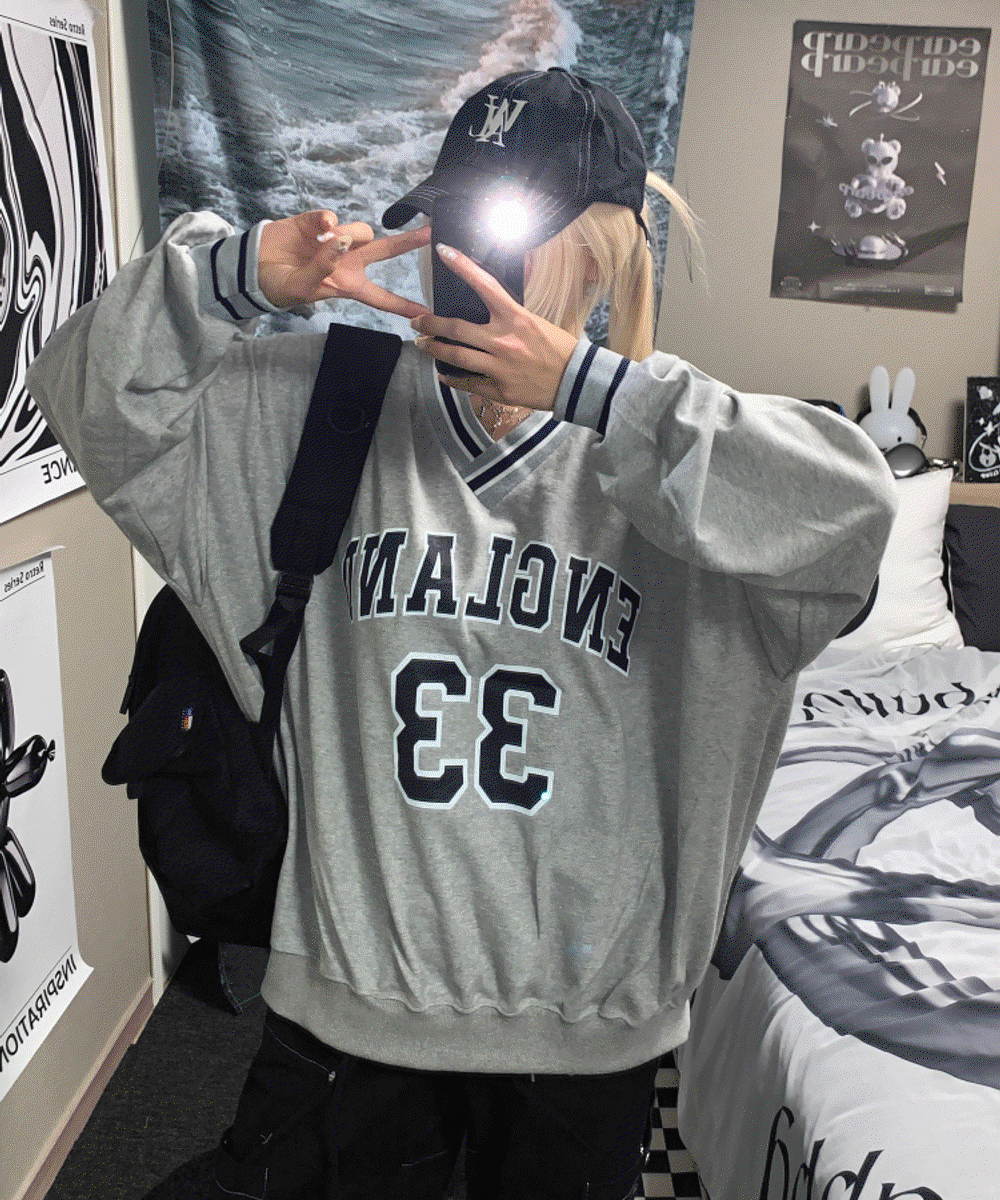 [루즈핏/교복템] 잉글랜드 33 브이넥 맨투맨 - 커플맨투맨 맨투맨코디 블록코어 짐웨어 트레이닝 져지 면 국내 넘버 프린팅 빅사이즈 오버핏 아방핏 유니크 스트릿 힙무드 휘뚜루 댄스