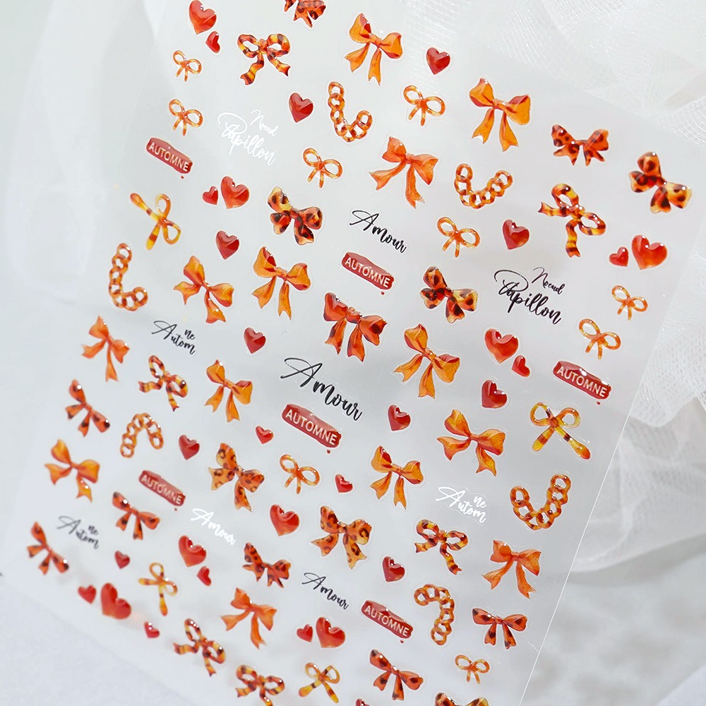3D엠보 네일스티커-383 리본 호박네일 하트