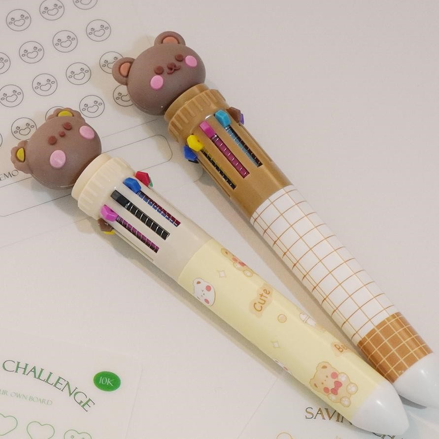 곰돌이 캐릭터 멀티 10색 볼펜 [0.7 귀여운 동물 다색 색깔 펜 필기 판촉 판촉물 홍보용 단체 기념품 답례 굿즈 선물용 학교 학원]