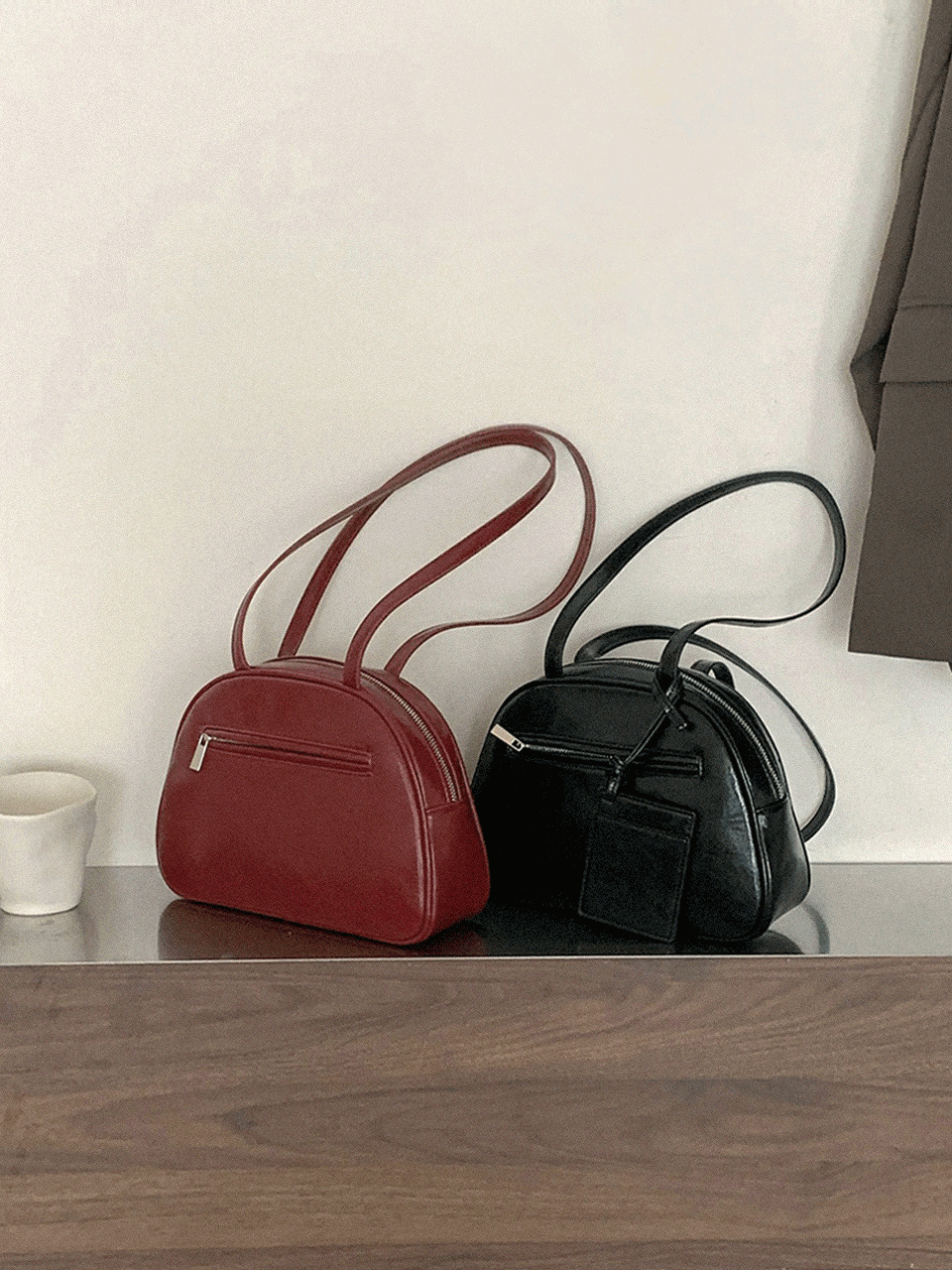 만다 크랙 라운드 카드 홀더 포켓 레더 숄더백 (4color)