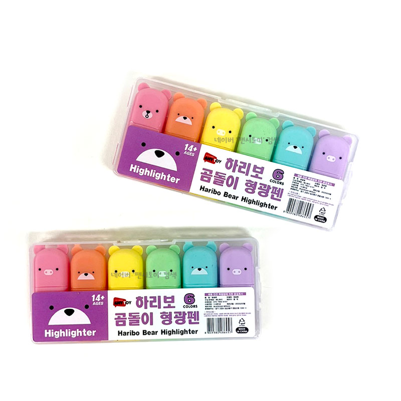 하리보 곰돌이 형광펜 동물그림 형광펜 6색 1세트 귀여운 필기도구