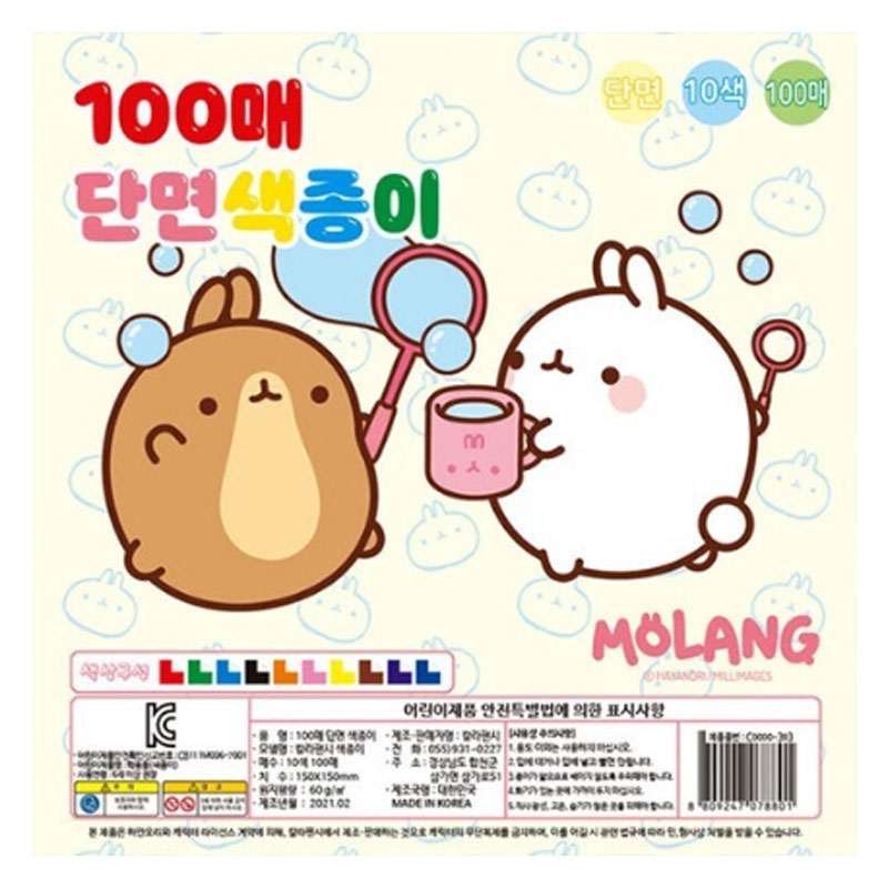 몰랑 단면 색종이 10색 100매 종이접기 유아 초등 어린이 미술 준비물 DIY 만들기