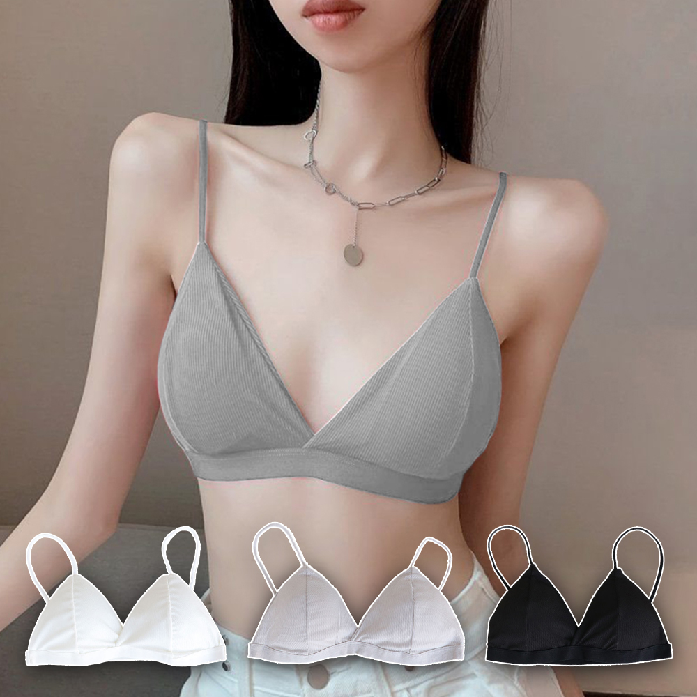 데일리 심플 노와이어 끈 편한 브래지어 골지 삼각 트라이앵글 브라렛 심플트라이앵글브라렛
