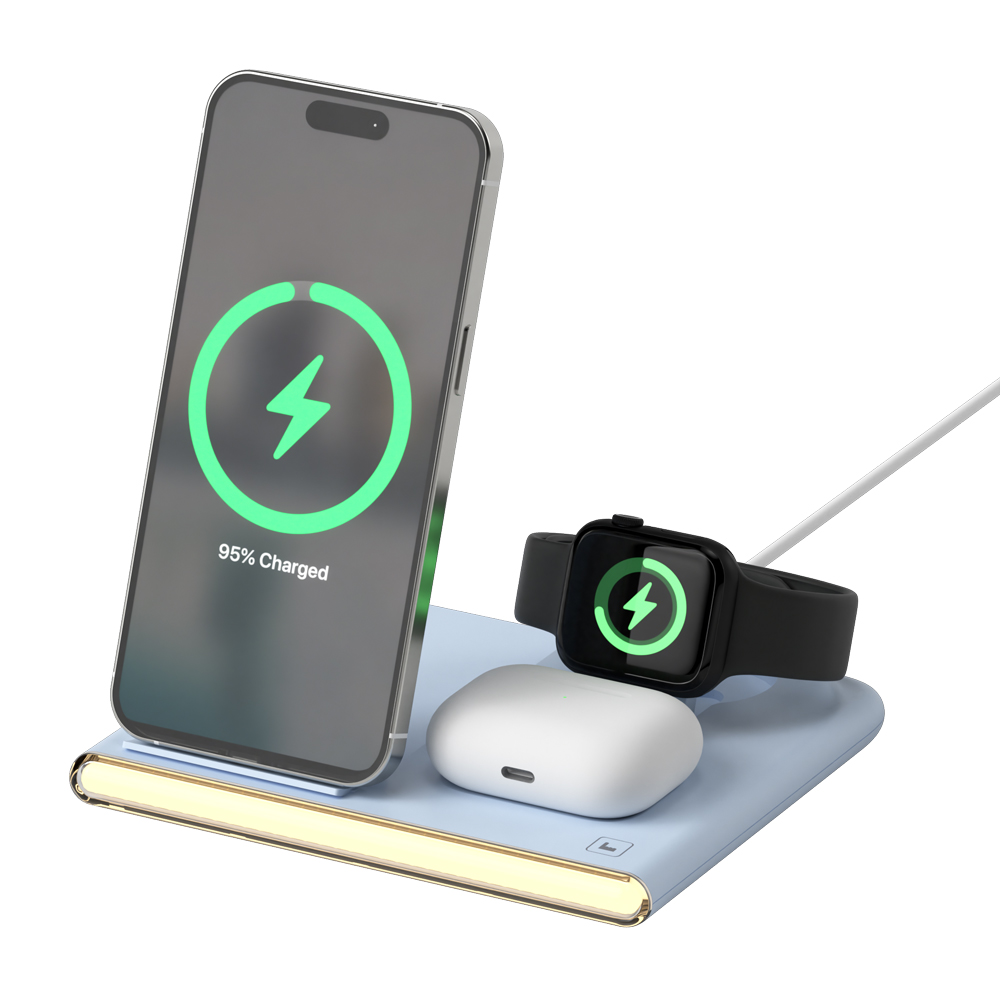 이어맥 4in1 멀티 워치 LED 무드등 핸드폰 거치대 패드 15W 고속 무선 충전기 EWC-02